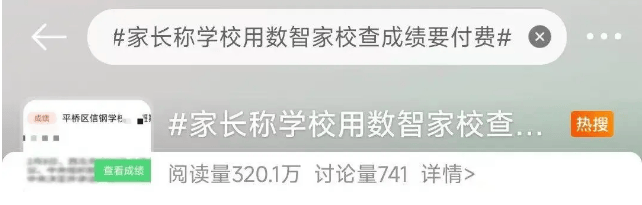 近日,河南信阳平桥区信钢学校一学生家长反映,学校使用“数智家校”App发通知和孩子的考试成绩,家长不付费无法查询。此事一出便引发热议,相关话题迅速登上热搜、热榜。