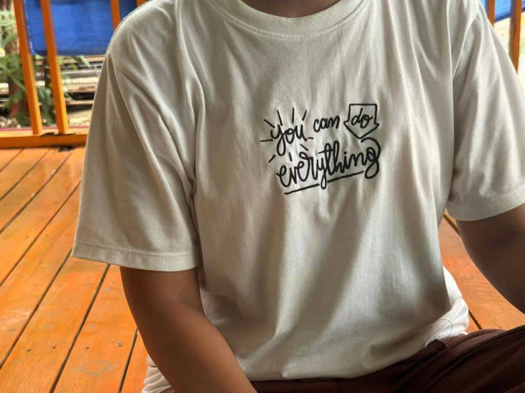4月6日上午,天空公寓附近寺庙里,一位女士仍在等待被困在废墟下的4名亲人被救出来,她的T恤上的印花是“you can do everything”。新京报记者 丛之翔 摄