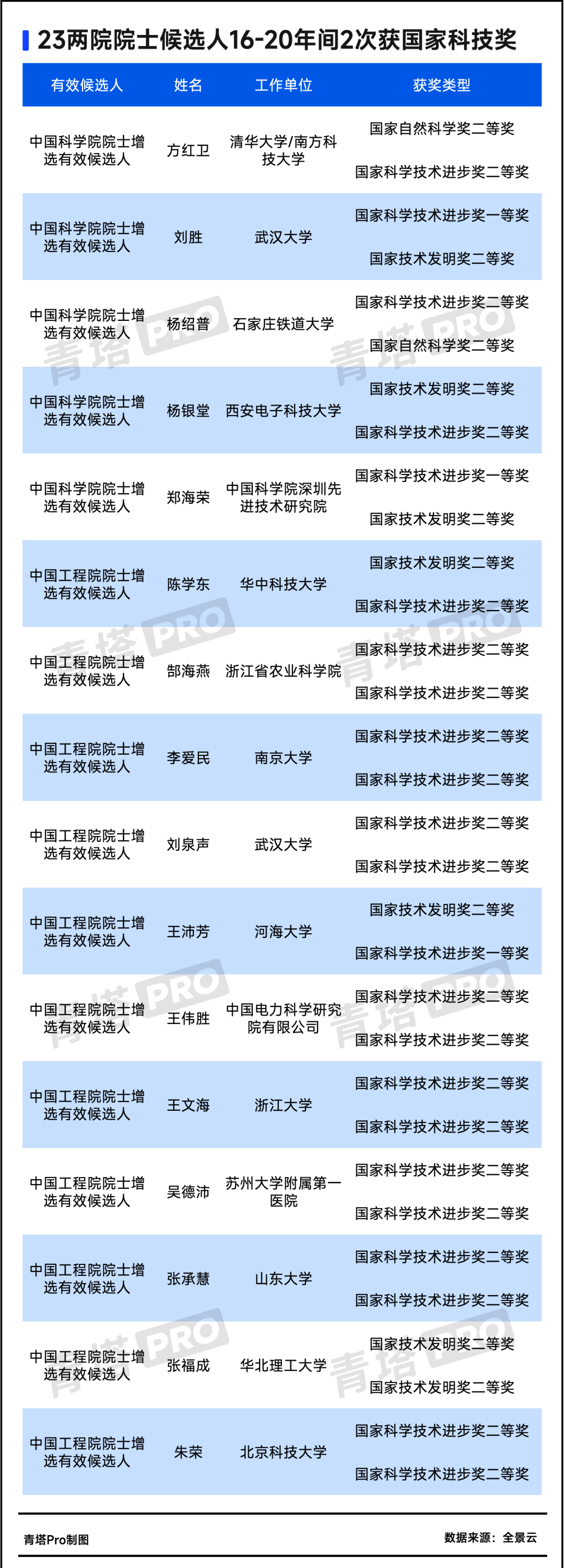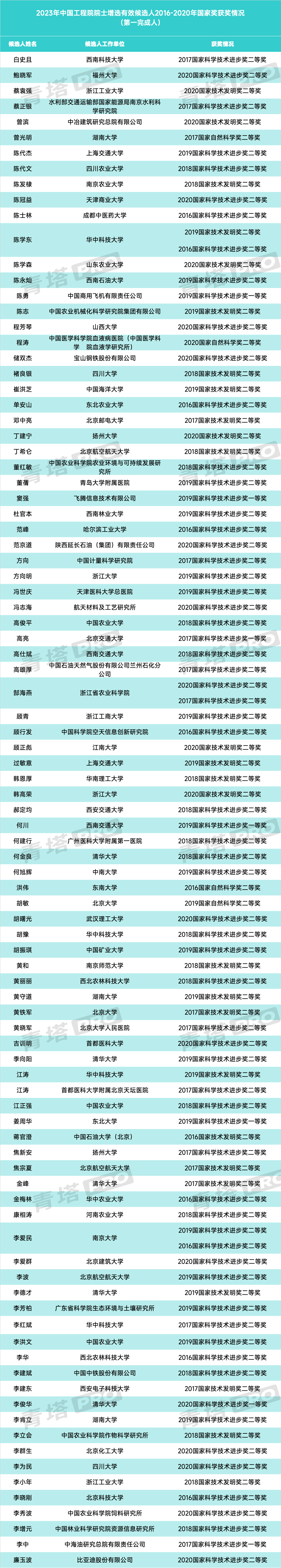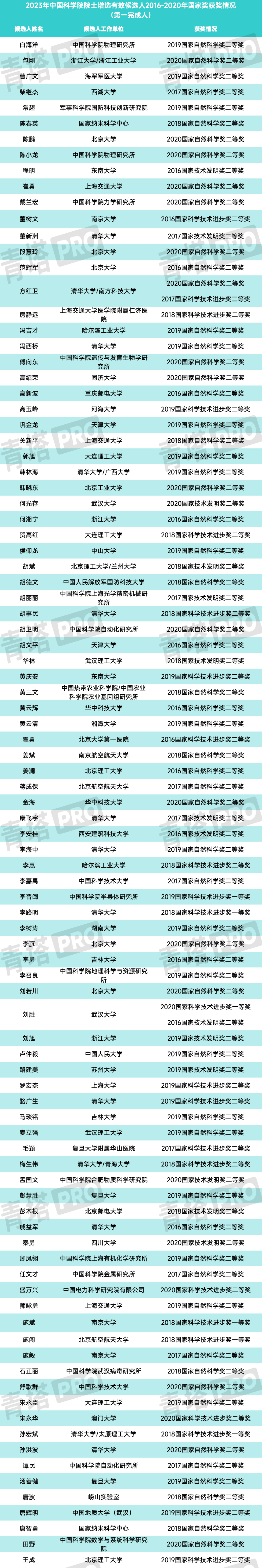 小编整理了两院院士有效候选人2016-2020年间以第一完成人身份获得国家科学技术奖情况,以窥实力。