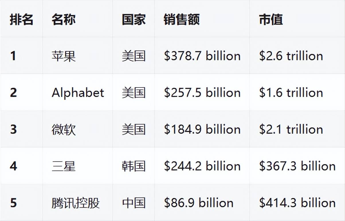 腾讯 322 亿美元位居第 1 ;